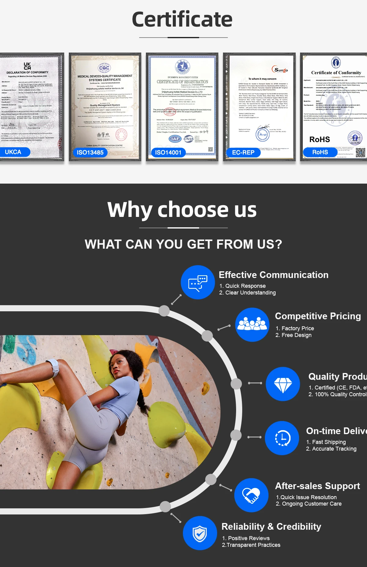 Principais produtos:Joelheira, Cinto de apoio lombar
